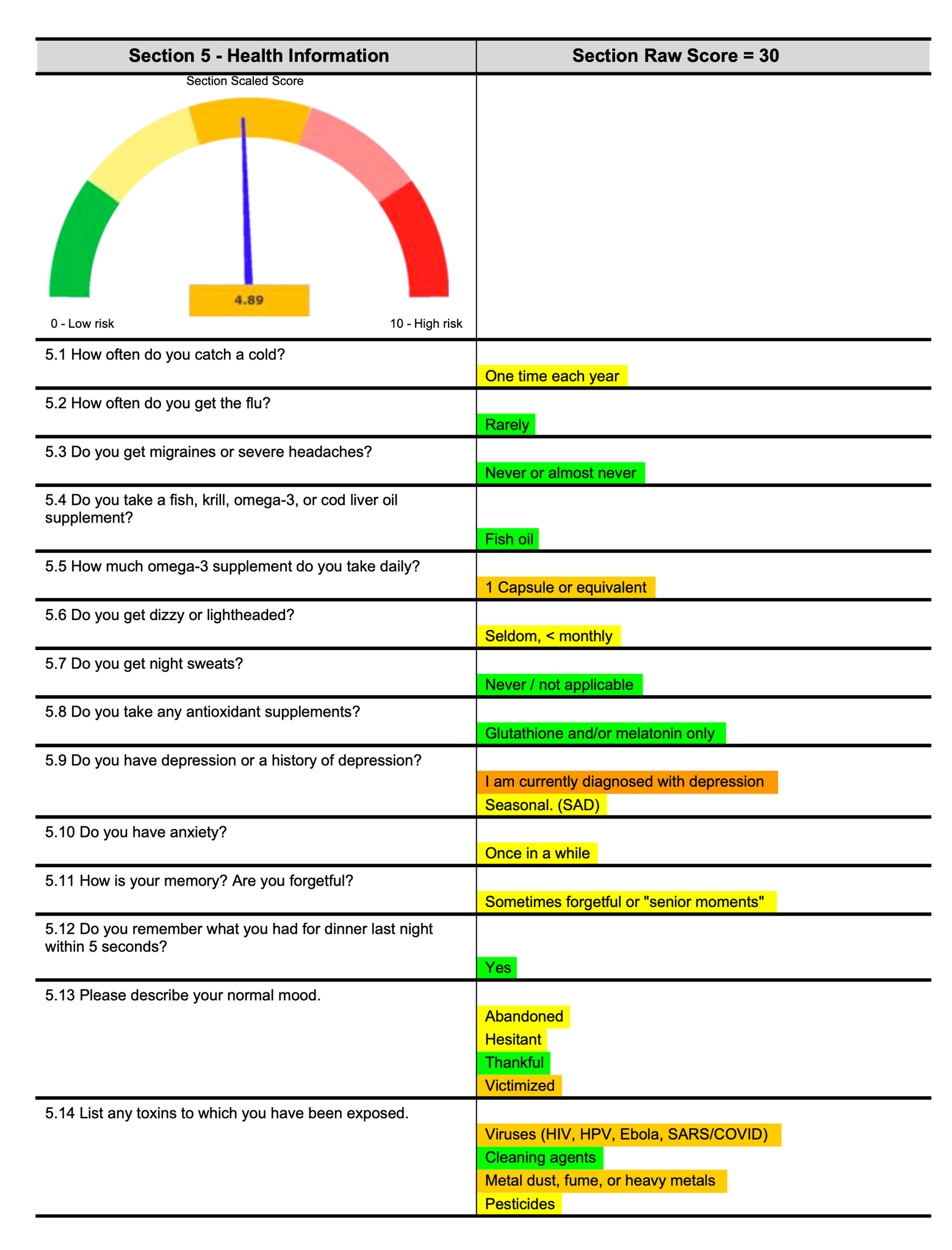 - Tell us about your diet and lifestyle in our 110-question risk assessment.